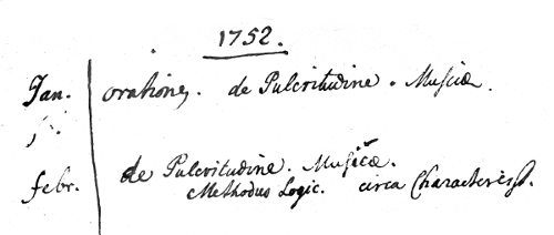 Aber auch kleinere Fehler können lästig sein: Zu Oktober 1752 ignoriert Bopp mit »expansion. calorem«, dass zwischen beiden Wörtern wohl noch das Zeichen für ›spiritus vini‹ und jedenfalls ein »p.« für ›per‹ steht, also vom Prinzip des Weingeistthermometers selbst die Rede ist. Die Gliederung der Themen kann bloß leicht verunklart sein: Zu Juni 1762 steht bei Bopp: »Theoremata über die Bewegung mehrerer Körper, so einand anziehen. Über Centrum gravitatis.« Wir lesen: »[…] Ihr Centrum gravitatis.« Gelegentlich kommen wir auch bei der Auflösung von Abkürzungen und der Gruppierung abgekürzter Einträge zu anderen Resultaten (so betrachten wir "Mach. Ichnogr." im August 1752 als zusammengehörig). Völlig irrelevant für den Benutzer sind solche Korrekturen gewiss nicht. – In Teil 2 der Einleitung, §§ 4-6, geben wir eine Übersicht über die Abweichungen unserer Lesung von der Bopps mit weiteren Beispielen, die insgesamt eine Neuedition bereits angezeigt erscheinen lassen.